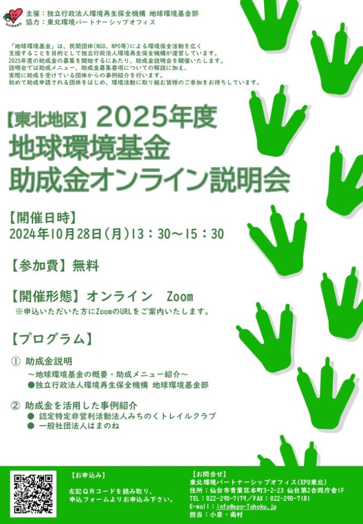 【地球環境基金】[東北地区]2025年度 地球環境基金 助成金オンライン説明会