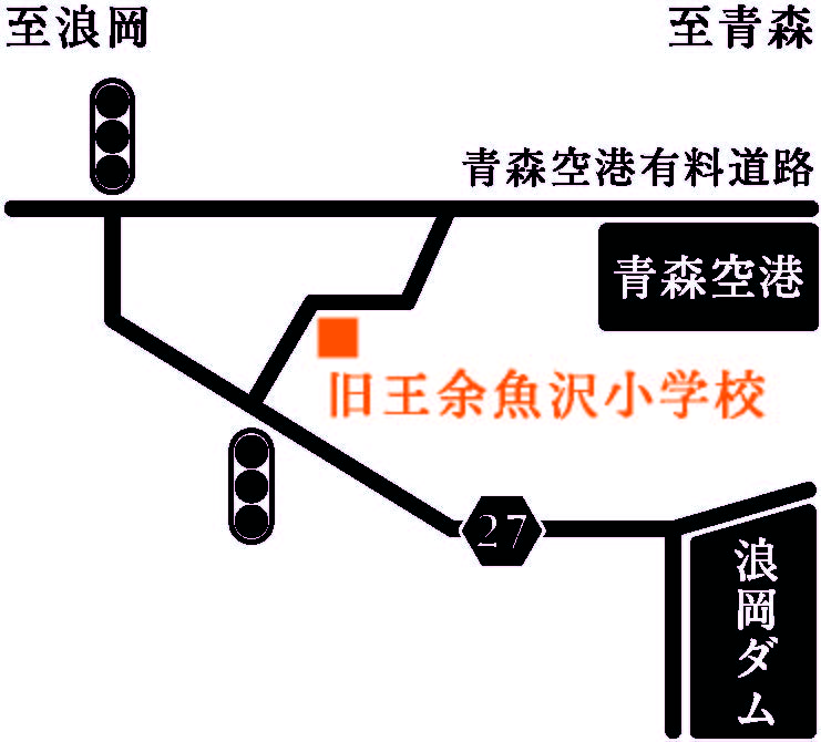 青森市内から青森空港へ向かい、空港を過ぎて最初の信号を左折。弘前、浪岡方面の方は、空港道路に入る上り坂手前の信号を右折。県道27号を進み、最初の信号で、左側の細い上り坂の道に入り、赤い屋根の校舎側面を右折し、グランド内へ駐車して下さい。