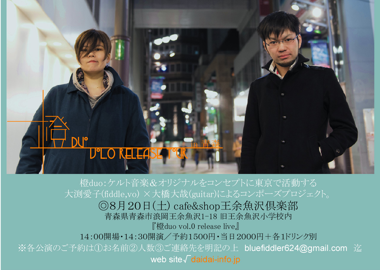 出演:橙duo(大渕愛子/fiddle,vo・大橋大哉/guitar)