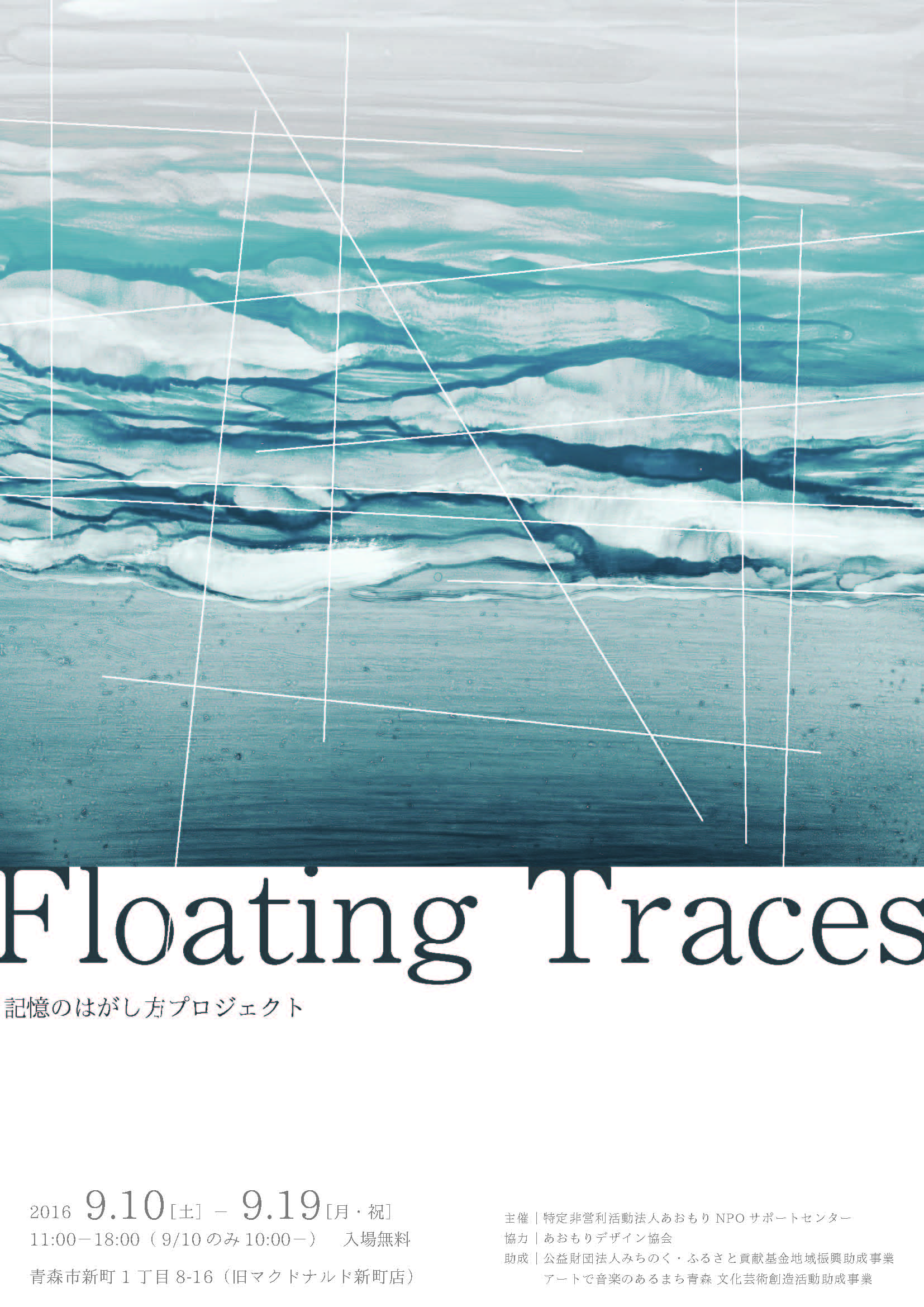 2014年に「AOMORI PRINTトリエンナーレ2014」企画制作部門で入賞した、阿部大介と鷹野健によって企画・制作されるこのアートプロジェクトは、日用品から建物に至るまで様々な物質の表面をはがし取り、そこに写された物質の変容や多様な痕跡から記憶を探る試みです。青森で二回目のプロジェクトとなる本展は「海」をテーマに展開されます。青森の海で使用されていた小型の漁船や漂流物などからうつしとられた痕跡による空間は、陸奥湾をめぐる記憶として「海の気配」を感じさせます。