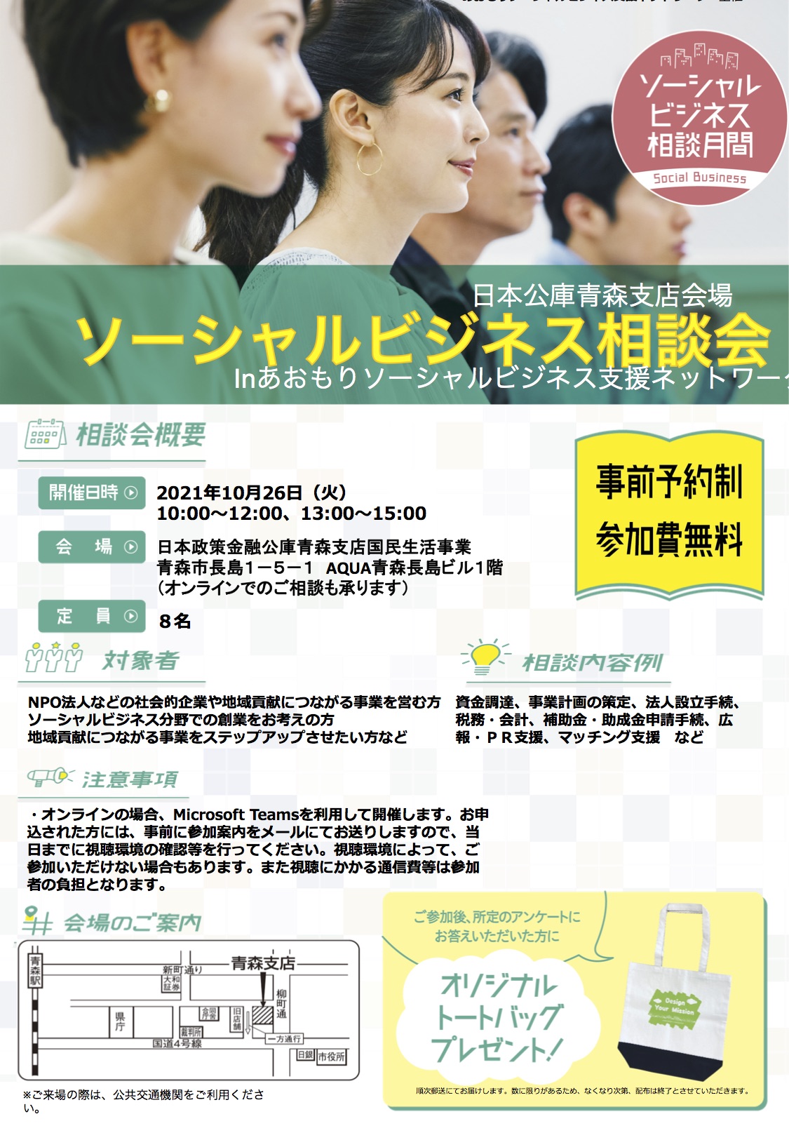 青森会場 日本政策金融公庫青森支店(青森市長島1-5-1 AQUA青森長島ビル1階)