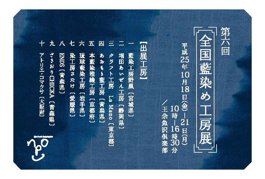 おかげ様をもちまして終了いたしました 毎年ご好評をいただいている全国藍染め工房展、今年で第6回となりました。 全国各地から10の工房の藍染め作品を、王余魚沢倶楽部に一堂に集めます。藍染め作品だけを集めた展示会、他ではなかなか見... -